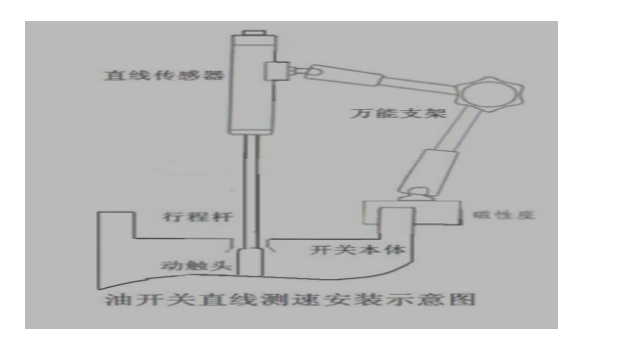 在測試開關速度時,先將直線傳感器安裝在高壓開關的動觸頭上。根據所測開關的類型油、真空、SF6,選擇相應的傳感器安裝。