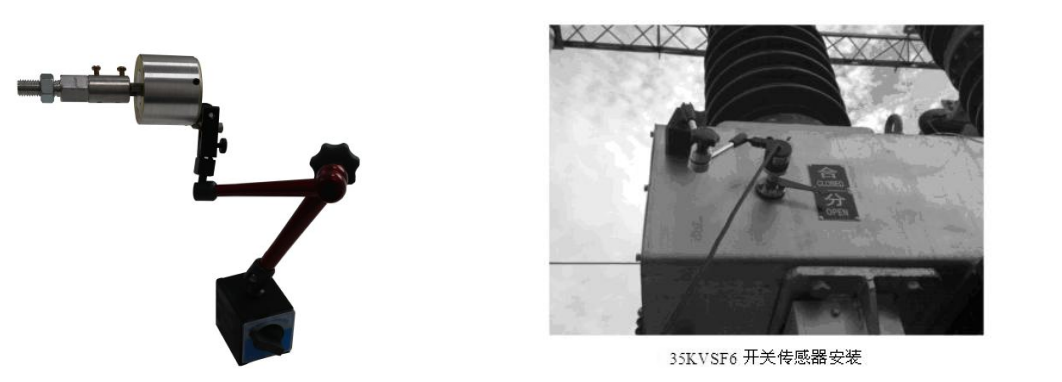 如果找不到拐臂,安裝在分合指式針處,先把分合指式針卸掉,再把傳感器連接頭擰上去即可。戶外真空開關及六氟化硫安裝示意圖: